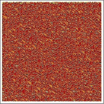 I found 3044695274 in the space of left-neighbor, four-color, 1/2-range rules. It has a very complicated pattern to it but it manages to just barely stay at the edge of coherence. You can see patterns in it. If you stare long enough there is even a feel that you just might comprehend it all.